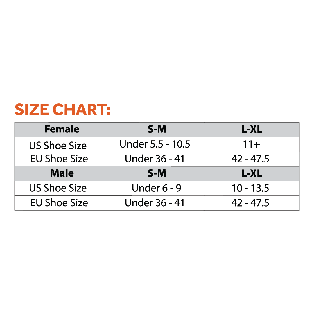 | US Shoe Size | Under 6 - 9 | 10 - 13.5 |