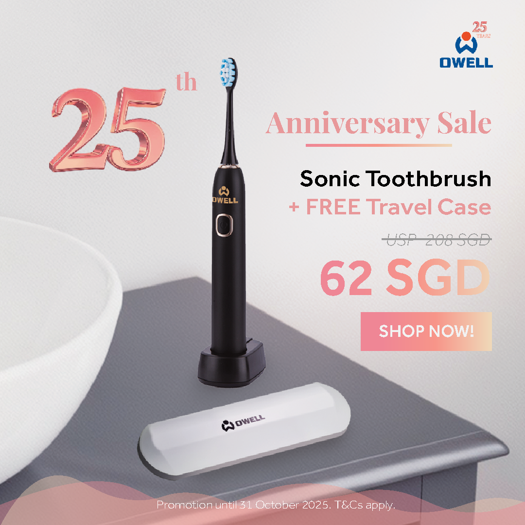 25th Anniversary Promotion: Enjoy a special price of $62 on our Sonic Toothbrush (usual selling price: $208), and receive a FREE toothbrush travel case, while stock last! Until 31 October, 2025. Terms and condition apply.