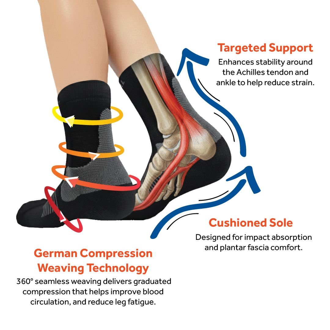Our new compression socks - now with extended height and reinforced compression for better Achilles tendon and Plantar Fascia support.